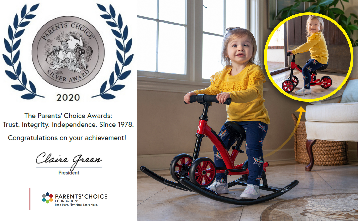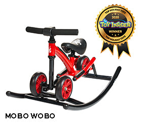 The Mobo Wobo is a 2-in-1 Rocking Baby Balance Bike for 1-3 year olds (infant to toddler). Our unique baby balance bike helps children reach their 3 major milestones: rock, walk, and ride.