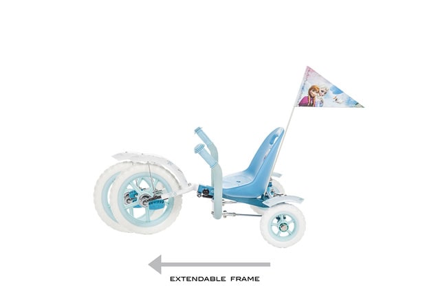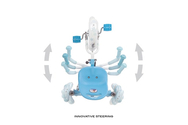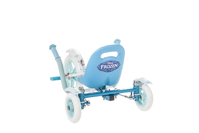 The sparkling magical style of the Mobo Tot Disney Frozen brings out the wonders of what we call innovation at its finest! Packed with enhancements from unique steering to comfortable seating, the Mobo Tot Disney Frozen is unmatched in the world of three-wheeled cruisers. With quality you can trust, this cruiser features an extendable, sturdy frame and never flat tires that grows with your child and last for years to come. It also includes a new innovative rear-wheel steering system with reversibility function that will make your child say "Wow, Wow, Wow!" Adjustable frame to fit heights up to 42", fun to ride, and easy to maintain - what more can you ask for? Riding wild with imagination, let your child have a enchanting time on the Mobo Tot Disney Frozen as she has never encountered before!